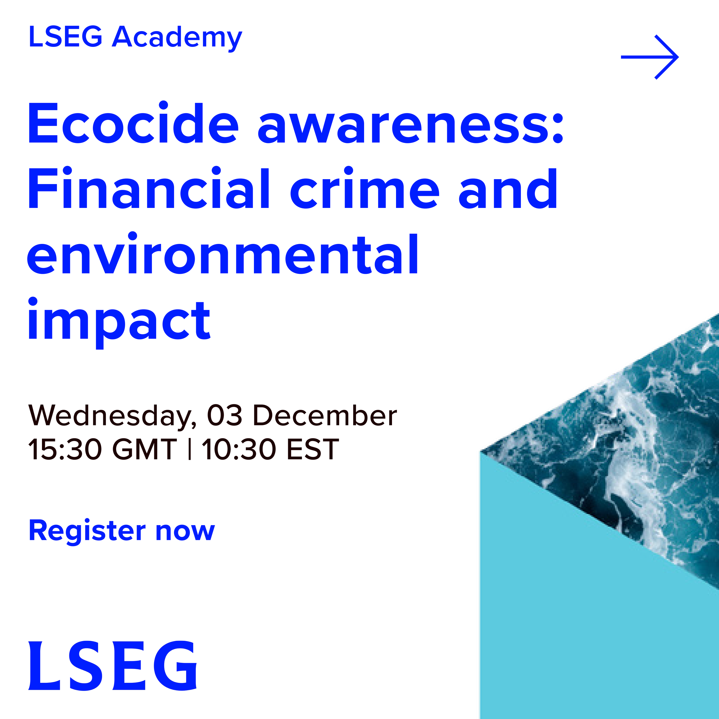 L'ecocidio, definito come la distruzione su larga scala degli ecosistemi, è considerato un potenziale crimine internazionale. Questa sessione riunisce esperti di Stop Ecocide International, Ecocide Law Alliance, Global Witness e World-Check Research per esaminare come i danni ambientali si intersecano con i reati finanziari, i conflitti e la conformità.